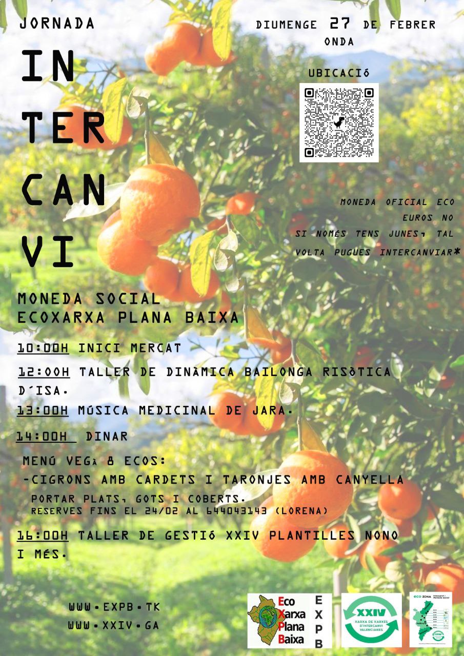 L'Eco Xarxa Sabor Valldigna i la Eco Xarxa Marina Alta, organitzen la trobada d'intercanvi i moneda social, per al proper diumenge 3 d'abril, que tindrà lloc al CSO La Mistelera amb les següents activitats:
